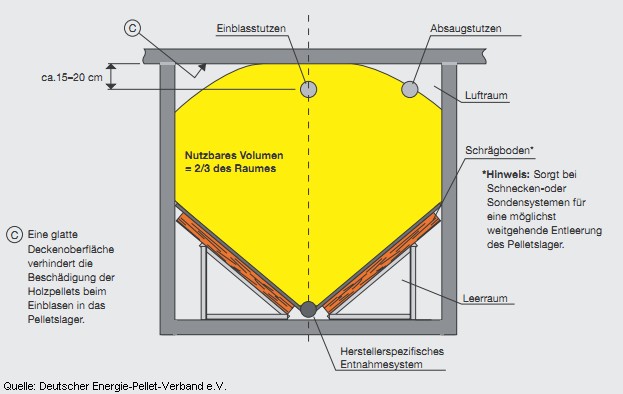 Blick ins Pellet-Magazin durch die Service-Luke. |