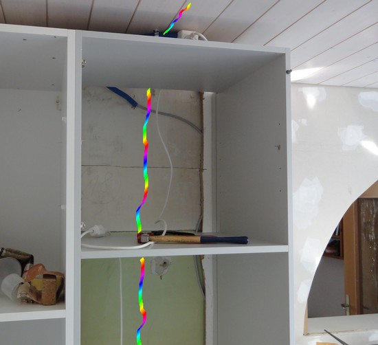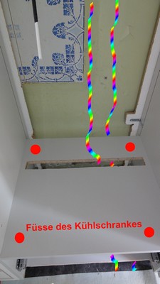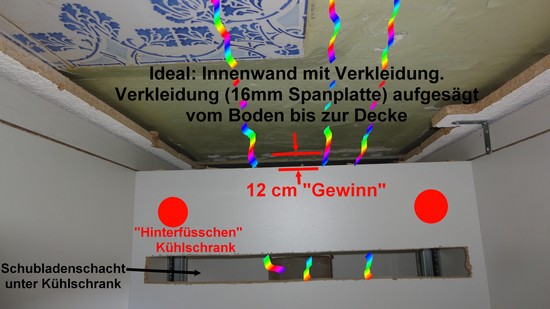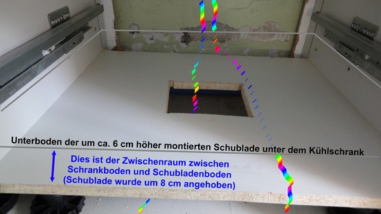 Der Längs-Schlitz unmittelbar unter dem Kühlschrank kommt exakt unter