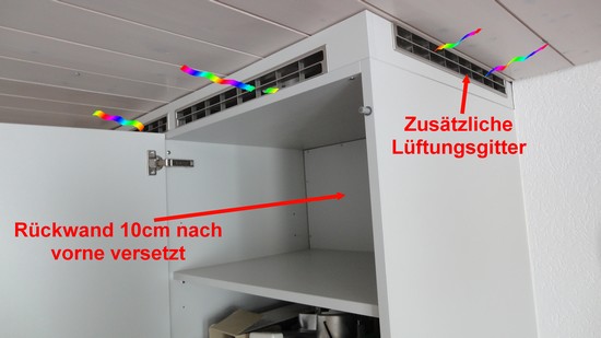 ...und Lufteinlass ganz hinten an der Wand: Kürzung des Bodenbrettes um